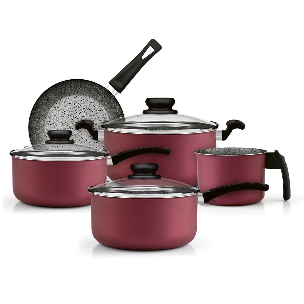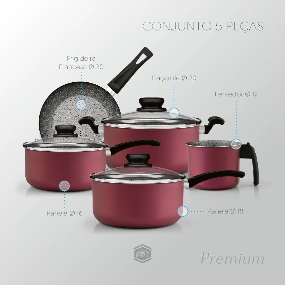 Conjunto de Panelas Antiaderente Cereja Premium Stone 5 Peças