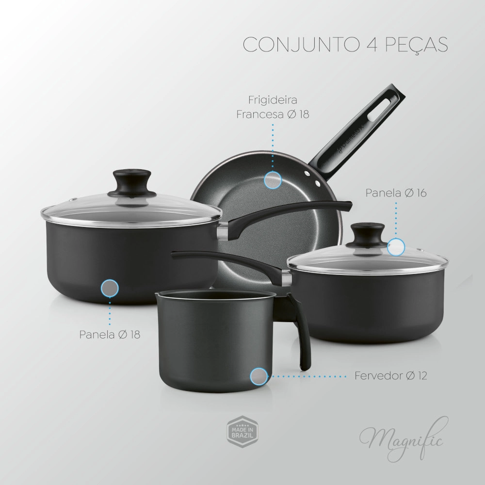 Conjunto de Panelas Antiaderente Grafite Magnific 4 Peças