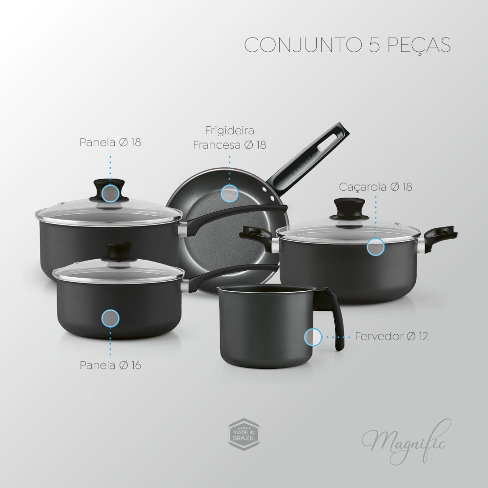 Conjunto de Panelas Antiaderente Grafite Magnific 5 Peças