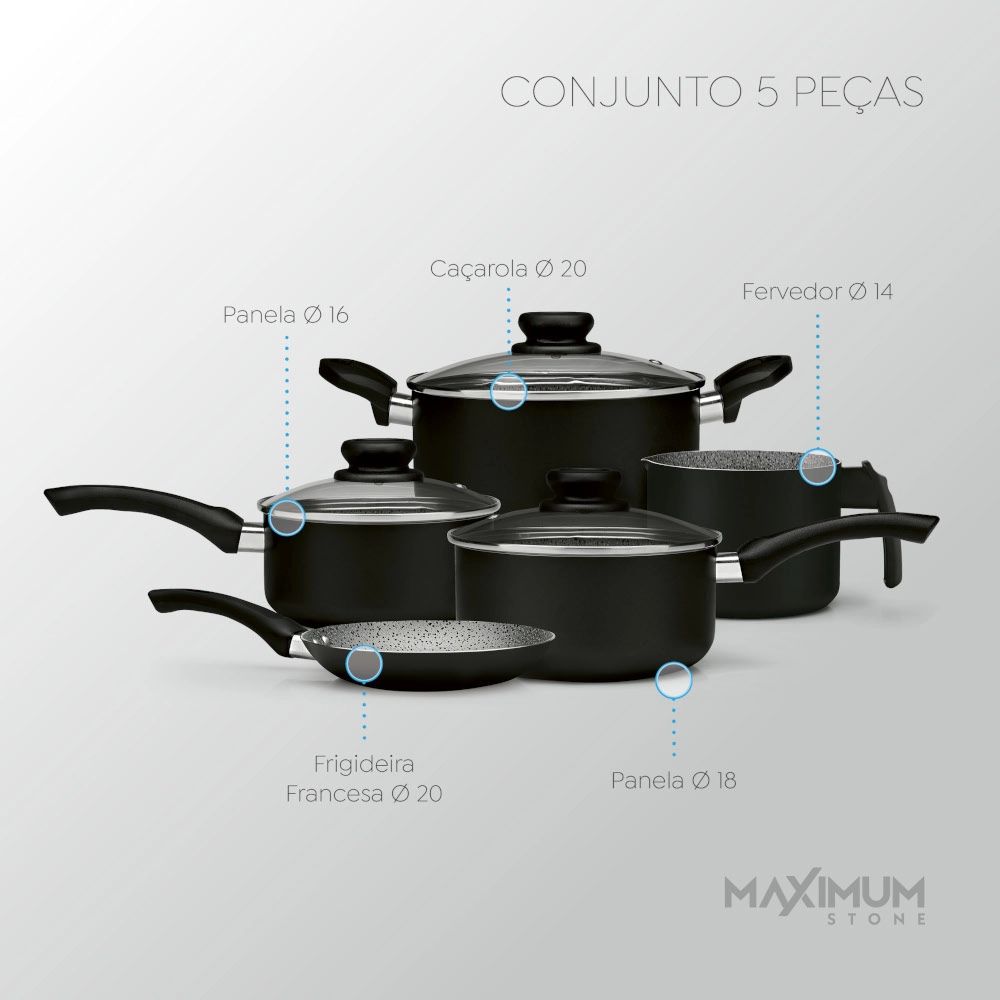 Conjunto de Panelas Antiaderente Preto Maximum Stone 5 Peças