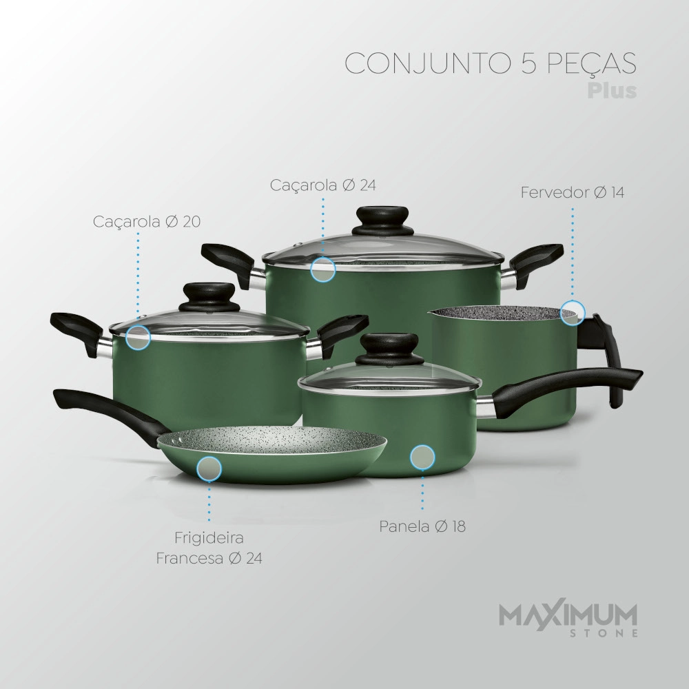 Conjunto de Panelas Antiaderente Verde Maximum Stone Plus 5 Peças
