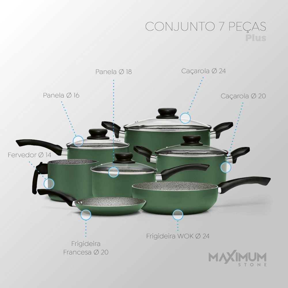 Conjunto de Panelas Antiaderente Verde Maximum Stone Plus 7 Peças