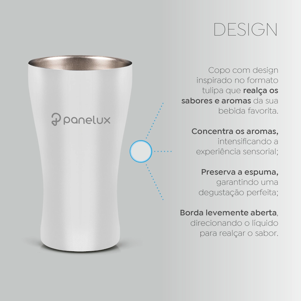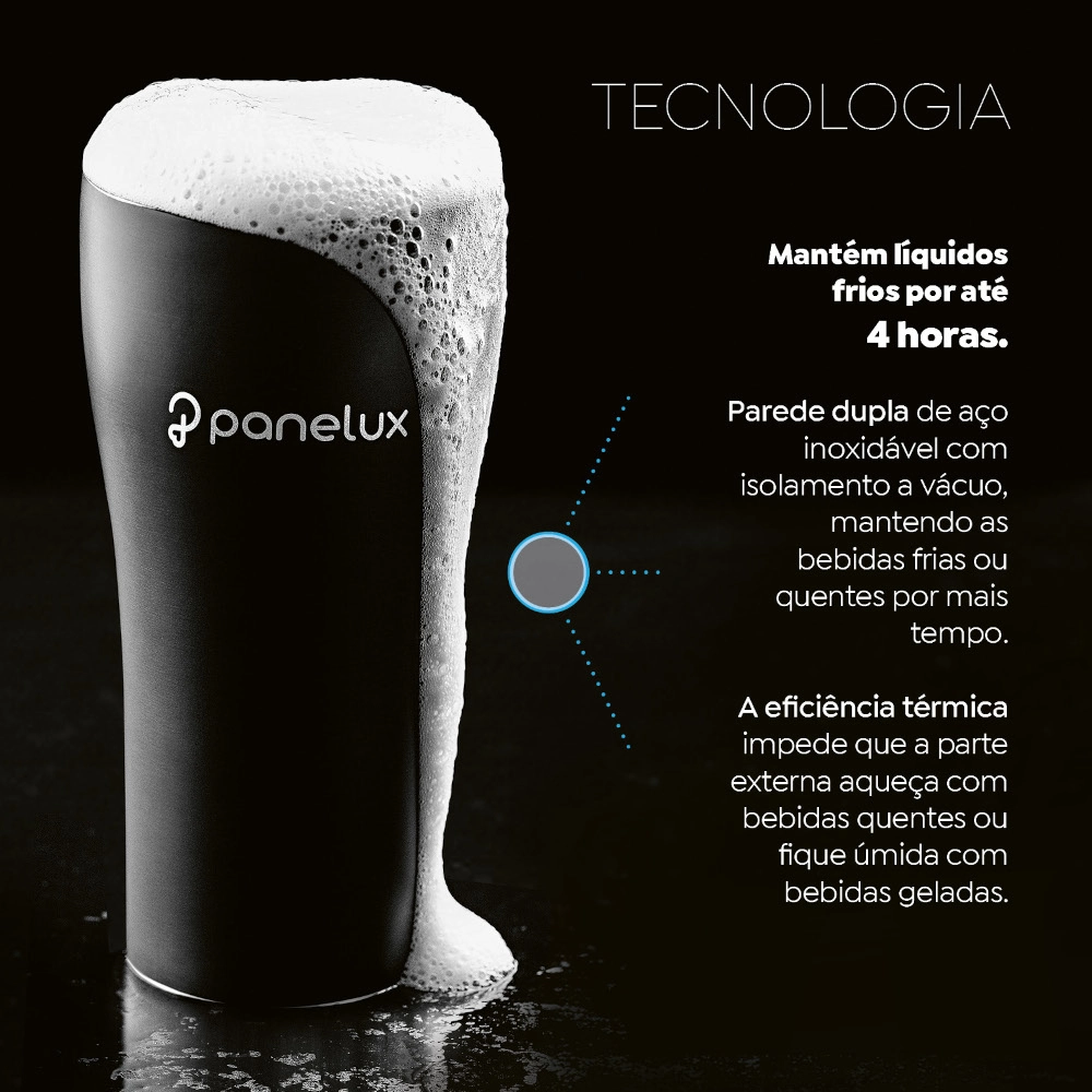 Desfrute de cada gole da sua cerveja com a temperatura ideal! O Copo Térmico Panelux foi projetado para manter sua bebida gelada por até 4 horas, garantindo refrescância do primeiro ao último brinde. Com parede dupla de aço inoxidável e isolamento a vácuo, ele preserva a temperatura sem suor externo, evitando desconforto nas mãos e superfícies molhadas.