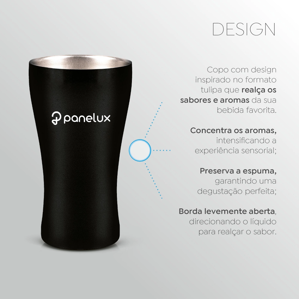 Desfrute de cada gole da sua cerveja com a temperatura ideal! O Copo Térmico Panelux foi projetado para manter sua bebida gelada por até 4 horas, garantindo refrescância do primeiro ao último brinde. Com parede dupla de aço inoxidável e isolamento a vácuo, ele preserva a temperatura sem suor externo, evitando desconforto nas mãos e superfícies molhadas.
