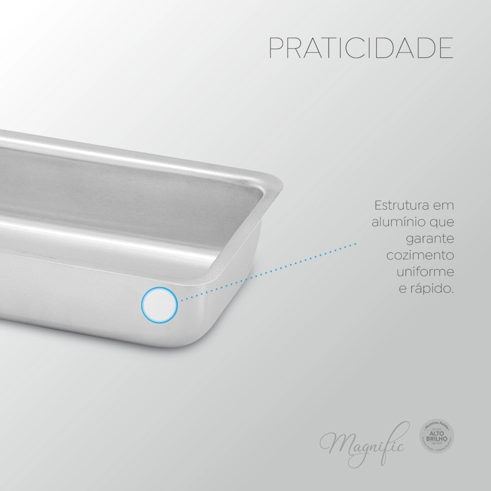As formas de pão Panelux Magnific Alto Brilho são utensílios essenciais para quem adora fazer pães caseiros, mas suas vantagens vão além disso. Versáteis, essas formas também podem ser usadas para assar pequenos bolos e outras preparações, oferecendo uma série de benefícios que tornam a experiência culinária mais prática e eficiente. Cozimento Uniforme – Uma das principais vantagens das formas de pão é a capacidade de promover um cozimento uniforme. Com seu design retangular e laterais altas, essas formas permitem que o calor circule adequadamente, garantindo que pães e bolos cozinhem de maneira homogênea. Isso resulta em produtos com texturas agradáveis, crostas douradas e interiores macios. Versatilidade de Preparações – Embora sejam projetadas principalmente para pães, as formas de pão também são ótimas para assar pequenos bolos, como bolos de chocolate, de cenoura e até mesmo bolos invertidos. Essa versatilidade permite que você use o mesmo utensílio para diferentes receitas, tornando a cozinha mais prática. Economia de Tempo – Preparar pães e bolos em formas específicas pode economizar tempo, pois você pode fazer várias porções ao mesmo tempo, de diferentes sabores. Isso é ideal para quem deseja preparar lanches ou sobremesas para a família, otimizando o processo de cozimento.