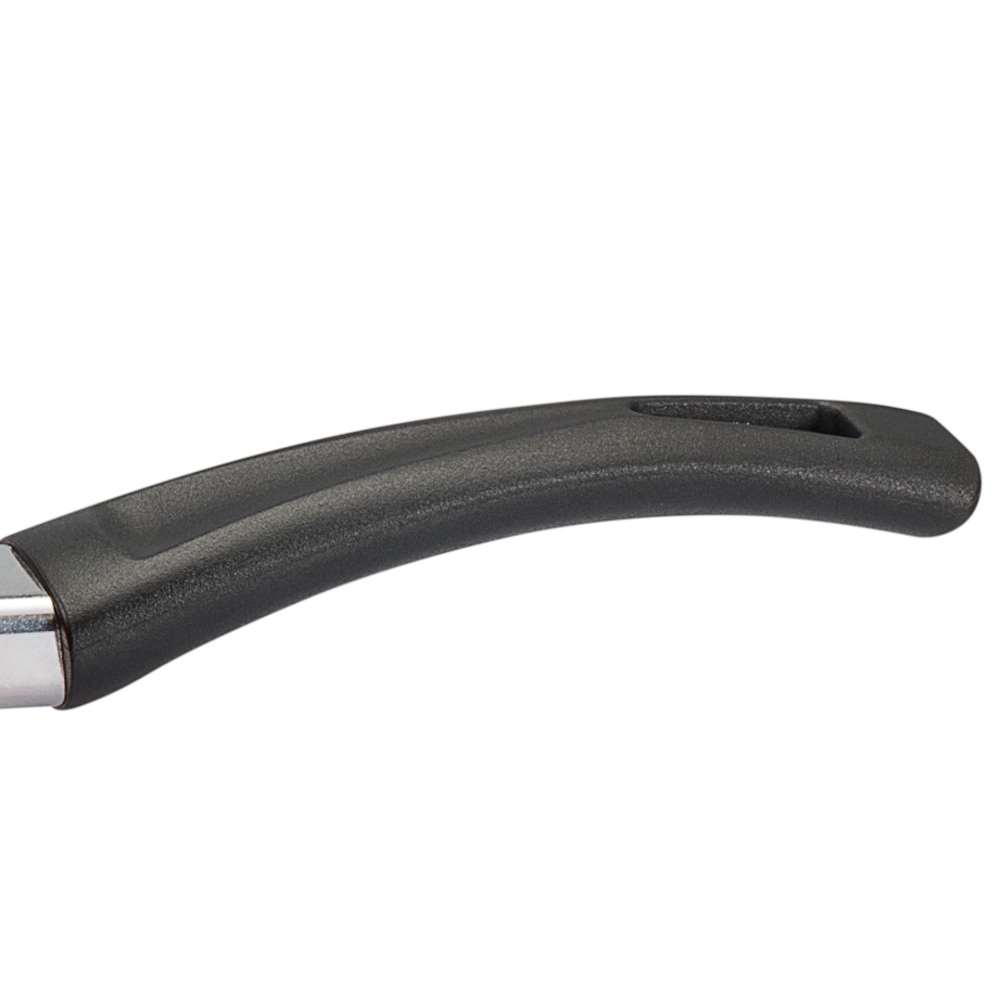 A base em alumínio distribui o calor de maneira uniforme, garantindo cozimento por igual. O cabo em baquelite antitérmico oferece segurança e conforto durante o manuseio.