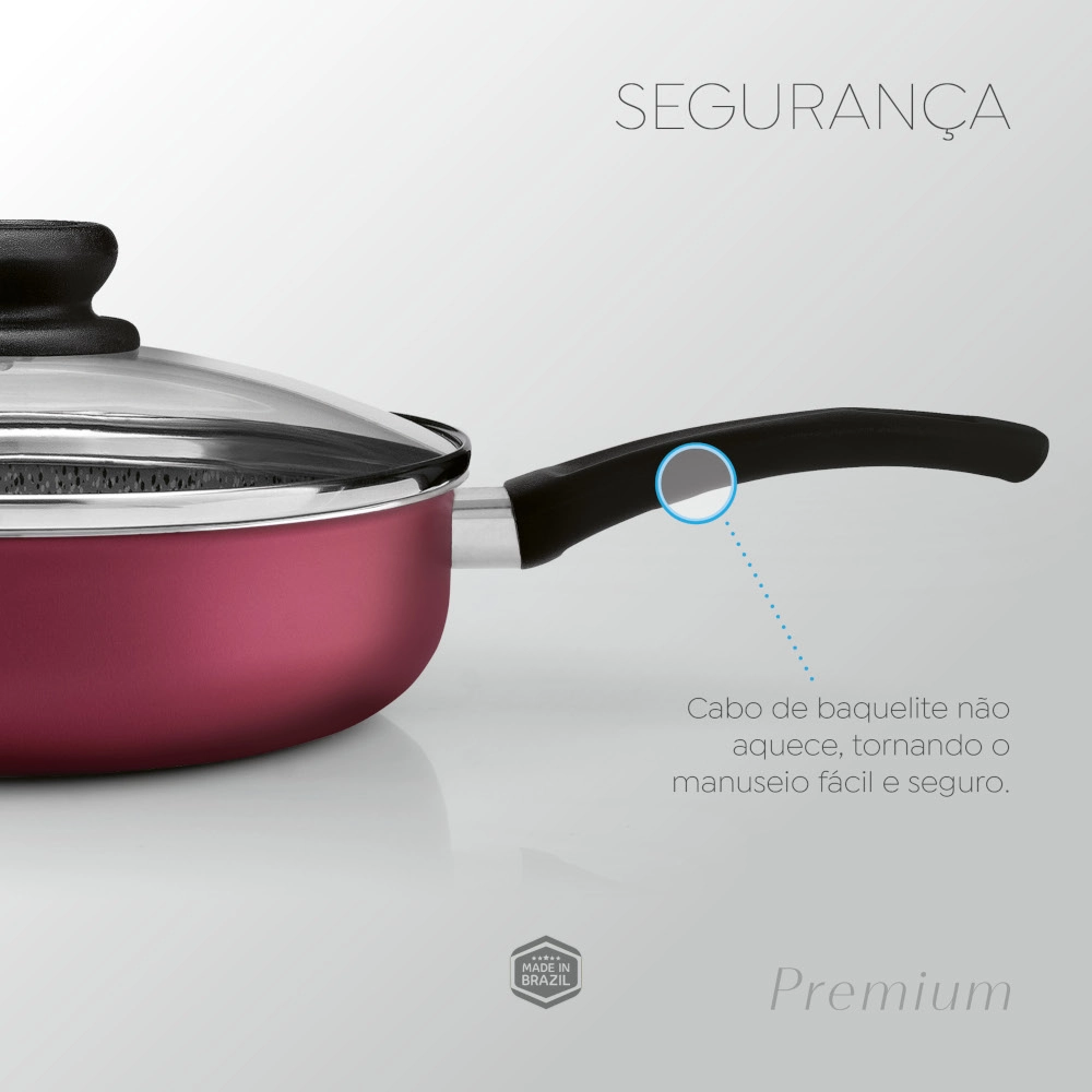 Frigideira francesa antiaderente cereja premium stone 22cm com tampa