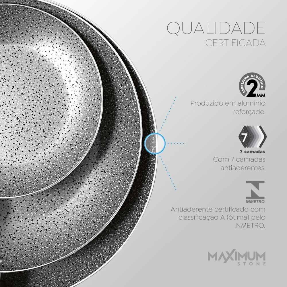 Frigideira Francesa Antiaderente Preto Maximum Stone 28cm com Tampa
