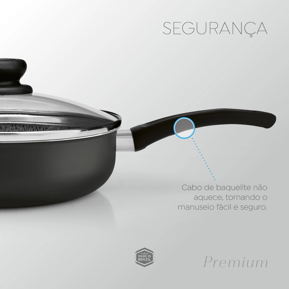 Frigideira Funda Antiaderente Grafite Premium Stone 22cm com Tampa