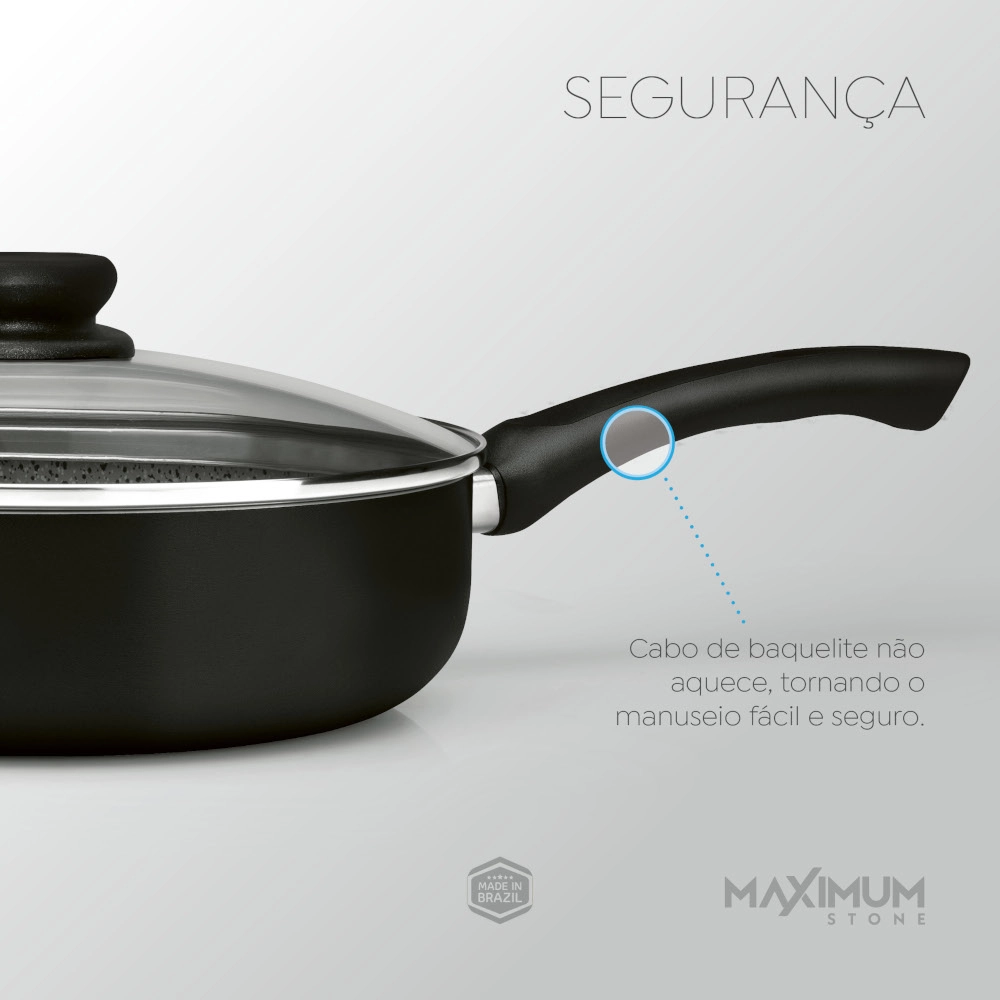 Frigideira Funda Antiaderente Preto Maximum Stone 22cm com Tampa