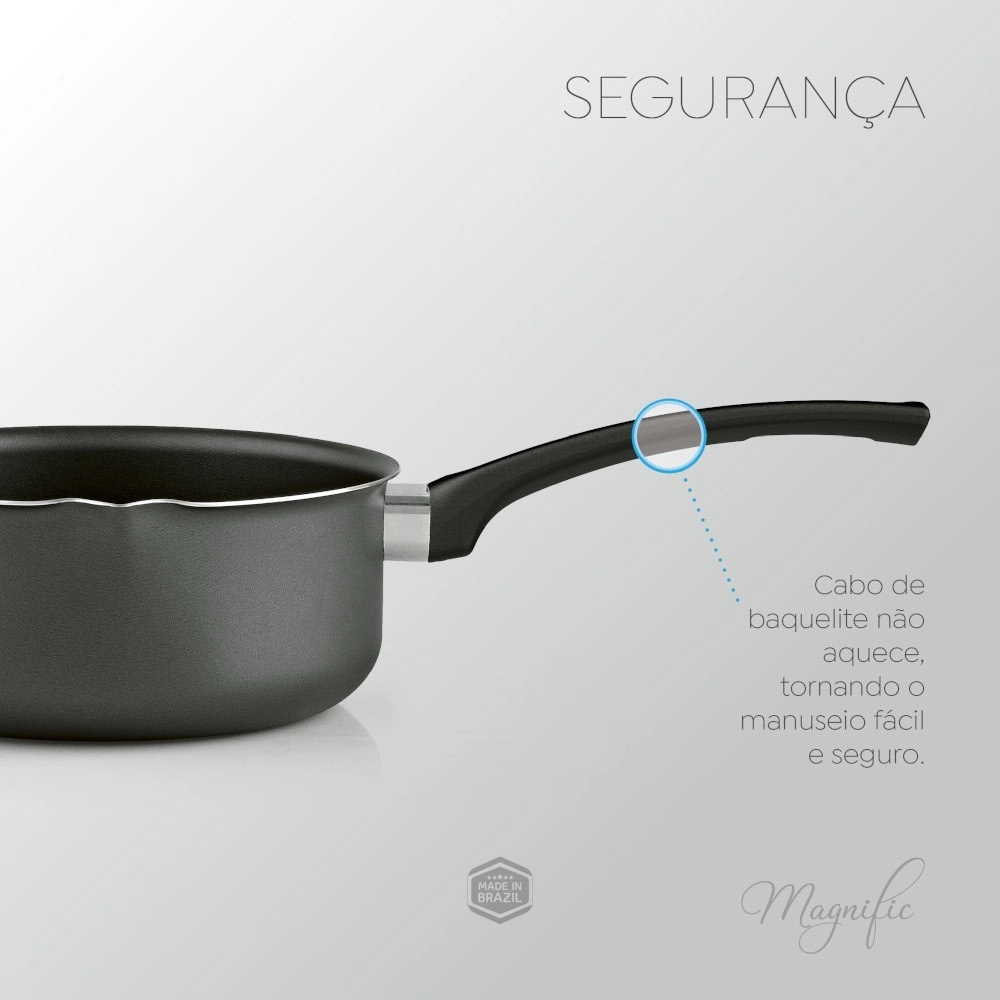 O Papeiro Antiaderente Grafite Magnific 16cm é um papeiro em alumínio com revestimento antiaderente, pequeno utensílio para aquecer e servir porções individuais, molhos e sopas.