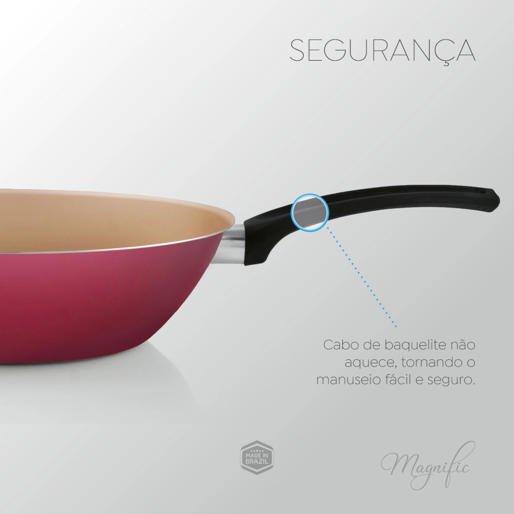 Wok em Aumínio Antiaderente Cereja Magnific 24cm